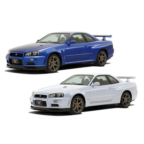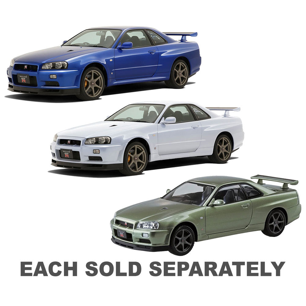The iconic Bayside Blue color brings this scale model of the R34 Skyline GT-R to life, highlighting its perfect blend of performance and aesthetics. A true symbol of Nissan's engineering prowess, this model captures the essence of a car that continues to captivate enthusiasts worldwide.