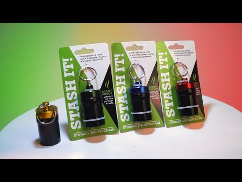 Mini aluminium lagringskrukke på en hendig nøkkelring.