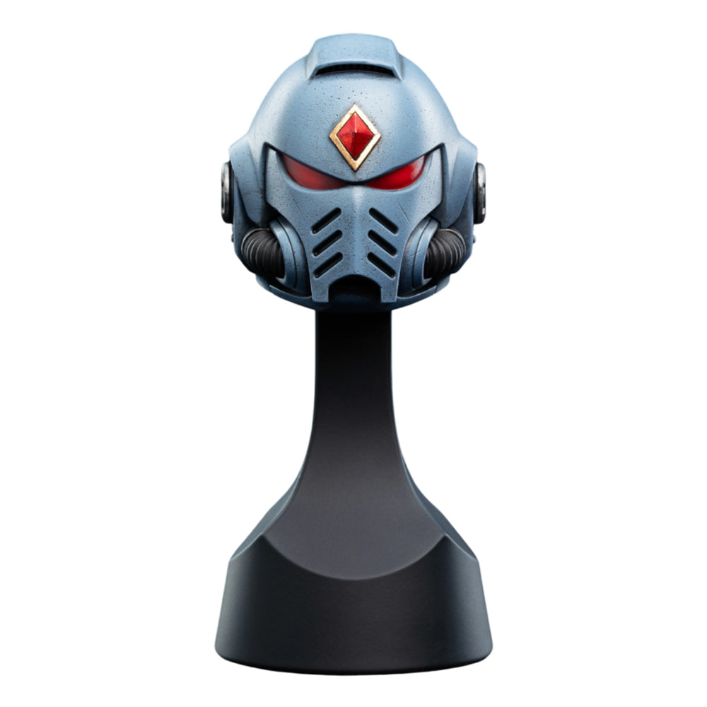 The rugged spirit of the Space Wolves is brought to life in this stunning helmet replica. Every detail, from the iconography to the feral design, speaks to the savage grandeur of the Sons of Russ. Meticulously sculpted and painted, this replica captures the essence of the chapter's untamed nature, making it a must-have piece for collectors who admire the ferocity of the Space Wolves.