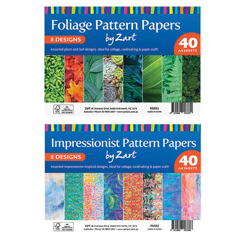 - Total pack contains 40 sheets (5 copies of each of the 8 designs)