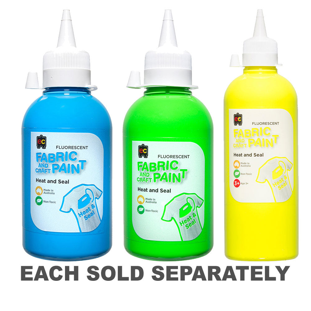 Unleash a burst of colour and creativity with the Australian-made Fluorescent Fabric and Craft Paints. These premium, non-toxic paints are versatile, suitable for fabric, MDF board, plaster, canvas, and wood. They're especially splendid on materials such as cotton, calico, denim, flannel, and hessian.