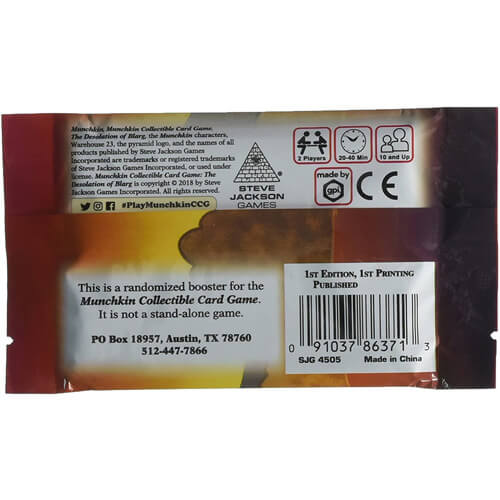 Eric Lang y Kevin Wilson ofrecen algo nuevo en el universo Munchkin: un nuevo juego de cartas coleccionable y fresco que tiene un juego de nivel competitivo pero aún conserva la tontería de la cual Munchkin es famoso. El juego de cartas coleccionable de Munchkin es un juego de combate en el que 2-4 jugadores suben de giro tras turno, puse a LOOT en juego para darse beneficios y ataques (¡o ataques con farol!) ¡Elimina primero al otro jugador y ganas! En palabras del co-diseñador Eric Lang, "Munchkin TCG es un juego muy diferente de Munchkin. Imagine todo el humor impresionante de Munchkin como una breve y competitiva Slugfest cara a cara" El juego de cartas se distribuirá como dos fijos- Juegos de arranque de jugadores y expansiones de refuerzo aleatorias.