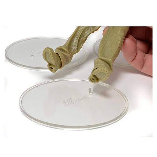 Dette settet med 10 klare plastdisplaystativer er kompatible med de fleste 6 " - 8" actionfigurer. De måler 3,5 "i diameter og har en veldig ren, klar finish.
