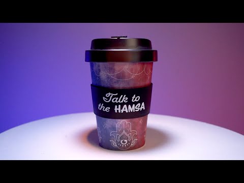 - Match Black Anti-Spill Lid and Protective Silicone Band avec une phrase Punny «Talk to the Hamsa».