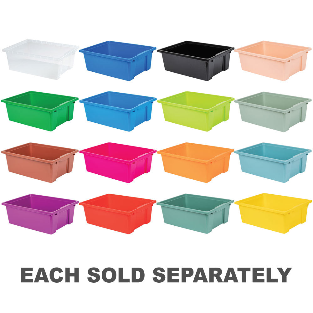 Organise classroom essentials with our space-saving Medium Tote Tray, ideal for storing literacy resources, art and craft supplies, and even STEAM equipment. Made from durable, lightweight plastic, this tray is built to withstand everyday classroom use while keeping materials organised and accessible. Stackable and portable, it fits perfectly in our Tote Tray Trolleys, making it easy to transport or store as needed.