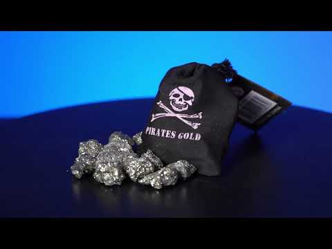 金色のピライトの宝物のポーチ! Pyriteまたは「Fool's Gold」は、メタリックな光沢と淡い真鍮の色を備えた本物の金と強い類似点を持っています。子供たちの海賊パーティーに最適です!