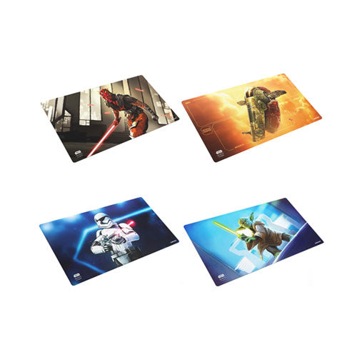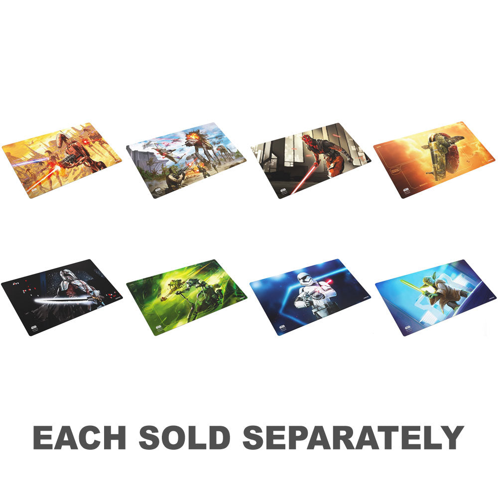 Available in four full color printed designs, the Game Mat brings the exciting atmosphere of the Star Wars™ franchise to the gaming table. This softly cushioned playmat is 2mm thick and protects playing cards from rough or dirty surfaces. Each mat has an ultrafine surface and an anti-slip back side. The fascinating design, the comfortable feel, and soft material are ideal for an upgraded gaming experience.