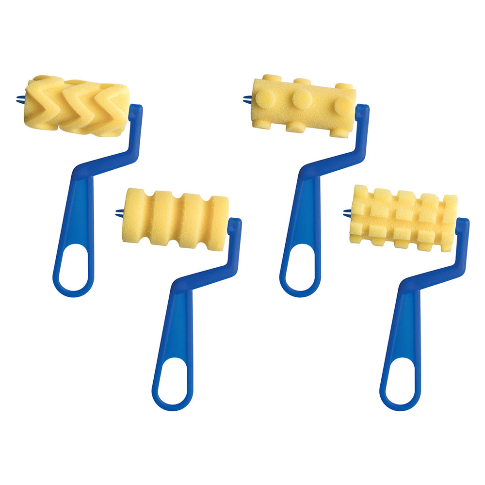 Foam Paint Rollers Set of 4 with Sturdy Plastic Handles! These rollers are perfect for adding unique texture and pattern to your painting projects. They are designed for use with water-based paints and are easy to clean after each use.