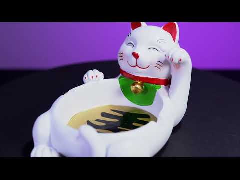 Søt katt askebeger, perfekt for å uttrykke din personlige stil. Formet som en viftende heldig katt og designet i en tradisjonell hvit farge med røde aksenter, en grønn smekke og gylden bjelle. Dette askebegeret lager en unik gave eller en morsom nyhet for deg selv! Stikk rumpene i kattens mage og hold aske og sigaretter inneholdt.