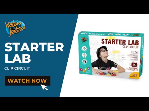 Um ótimo produto para iniciantes, o CLIP Circuit Starter Lab não requer experiência elétrica anterior ou ferramentas para montagem. Este kit eletrônico fácil de construir apresenta componentes que se juntam, para que não seja necessária solda. Todas as peças são codificadas por cores e marcadas para mostrar a direção que a corrente viaja.